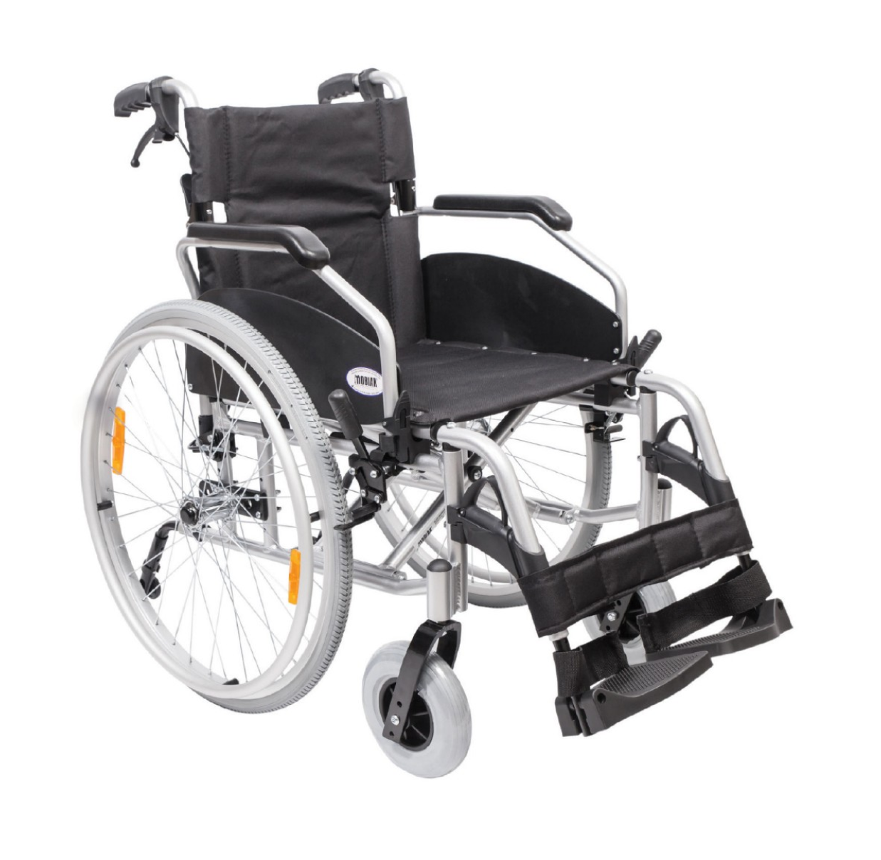Το αναπηρικό αμαξίδιο διαθέτει αλουμινένιο σκελετό με ασημί χρώμα και πτυσσόμενο σχεδιασμό για εύκολη αποθήκευση. Το κάθισμα είναι υφασμάτινο με εσωτερική επένδυση και αντιπυρικές ιδιότητες. Περιλαμβάνει πτυσσόμενα πλάινα, αποσπώμενα υποπόδια ρυθμιζόμενου μήκους και περιστρεφόμενα. Οι πίσω τροχοί είναι 24” συμπαγείς με ακτίνες και Quick Release, ενώ οι μπροστινοί τροχοί είναι 8” x 2”. Διαθέτει μηχανισμό σπαστής πλάτης, ρυθμιζόμενα αντι-ανατροπής ροδάκια, φρένα στις χειρολαβές, και 2 ανακλαστήρες στους πίσω τροχούς.